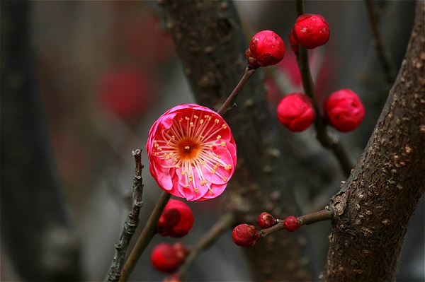 “七九河开,八九雁来”,物候更替,春气渐浓,草木逐渐泛青,傲然一冬的梅花,抖擞着精神,绽吐清香、晕染东风,迎接春的到来。