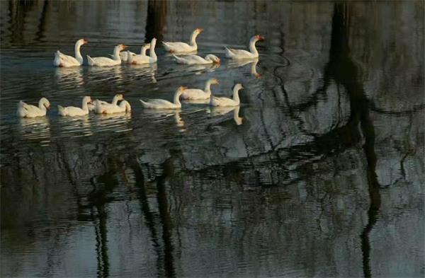 乡村春已至,鹅儿水中游。