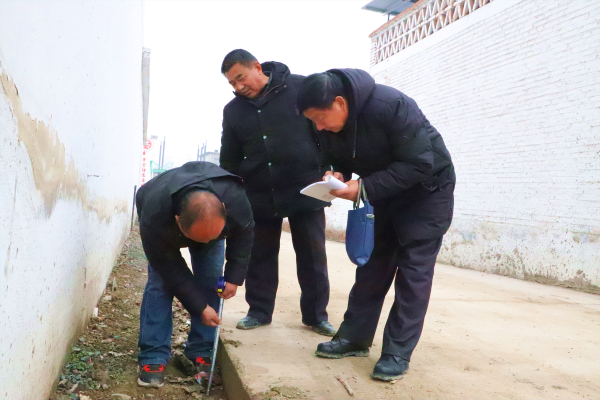 对涉及民生工程的水泥路施工情况,进行实地测量,现场监督一事一议民生工程。