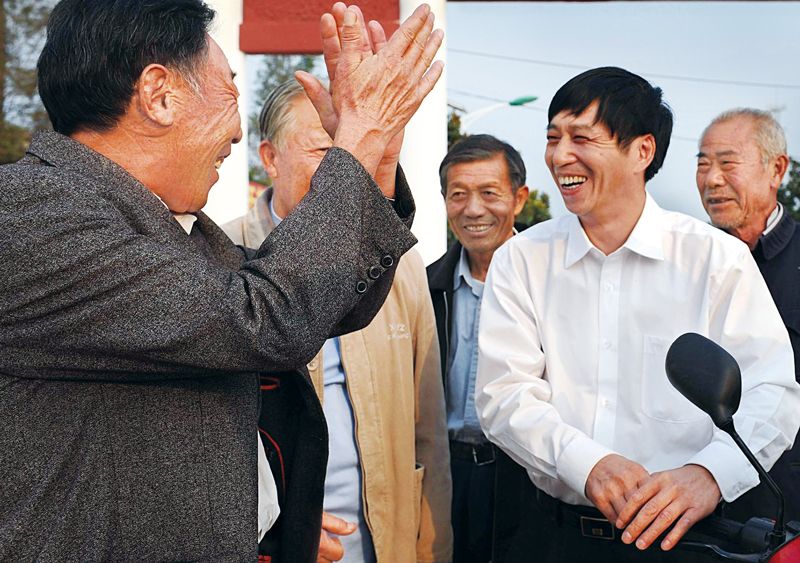 上世纪70年代末,敢为人先的小岗人为“大包干”按了一次红手印,拉开了中国农村改革的宏大序幕;本世纪初,他们为一个人按了三次红手印,铭刻了一名共产党员的不朽丰碑。这个人就是安徽凤阳县小岗村原党委第一书记、村委会主任沈浩。沈浩同志是当代共产党员的优秀代表,是安徽全体党员干部践行“三严三实”的一面旗帜。2016年4月,习近平总书记在小岗村考察时指出,希望大家向沈浩同志学习,进一步把乡亲们的事情办好。图为2008年10月7日,沈浩(前右)与“大包干”带头人交流小岗村的改革发展情况。新华社记者王雷/摄
