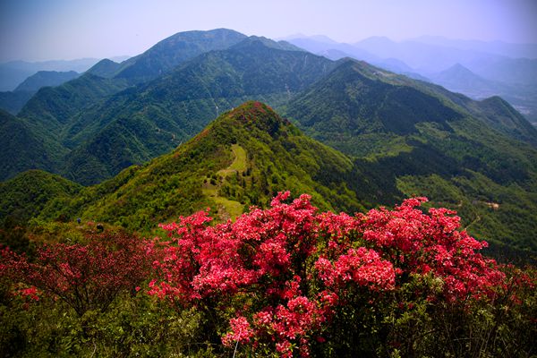 花团锦簇,如锦如缎,火红的花朵盛开在山巅,空气中充盈着缕缕花香,随着阵阵山风,奔向远处连绵的青山。