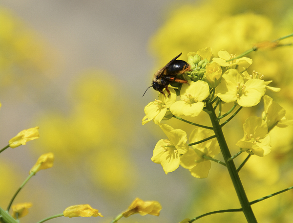 春分时节,春风摇曳,菜花盛开,清香弥漫,辛勤的蜜蜂展翅乘风,急急忙忙的寻花觅蕊、采集蜂蜜,在大好春光中演绎着一曲劳动之歌。(韩芳/摄)
