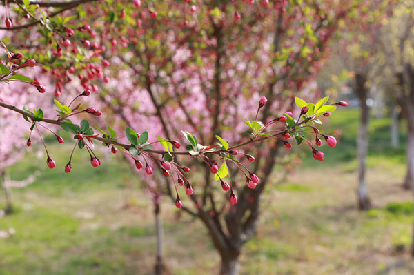 春风轻抚,海棠花呈现出生机勃勃、翠意盎然的青春模样