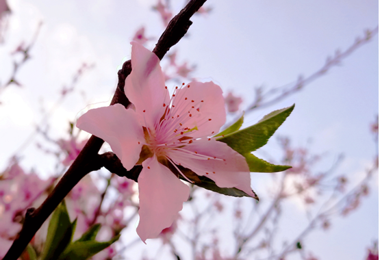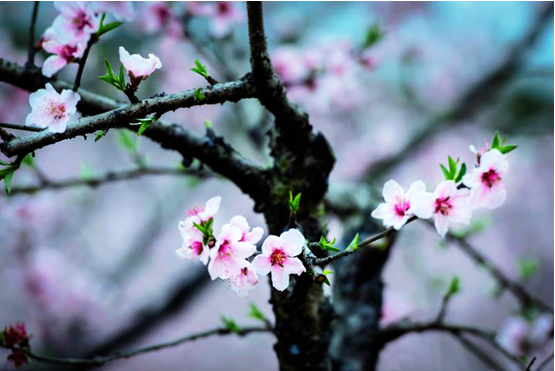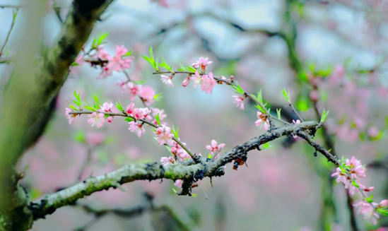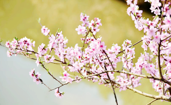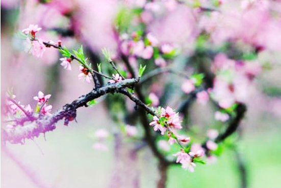 “桃花春色暖先开,明媚谁人不看来。”初春之日正是江南邂逅桃花的良辰时节,粉里透红的桃花一朵紧挨一朵,挤满了整个枝条。阵阵春风拂面而过,桃花仿佛化身只只色彩艳丽的粉蝶,带着春的氤氲翩跹起舞;又似仙女散花,漫天飘起阵阵桃花细雨,令让赏心悦目,神迷欲醉。