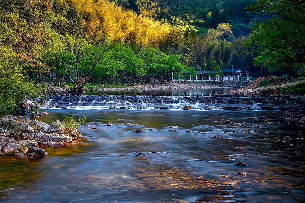 醉卧幽谷听潺湲,聊以自慰群山间。一路深入,与流水做伴、与游鱼为友,清溪落处、石桥为阻,断如银帘、倾泻而下。嬉戏于幽谷怀中,接受苍翠的洗礼,感受大自然的力量,连呼吸都变得空灵起来。