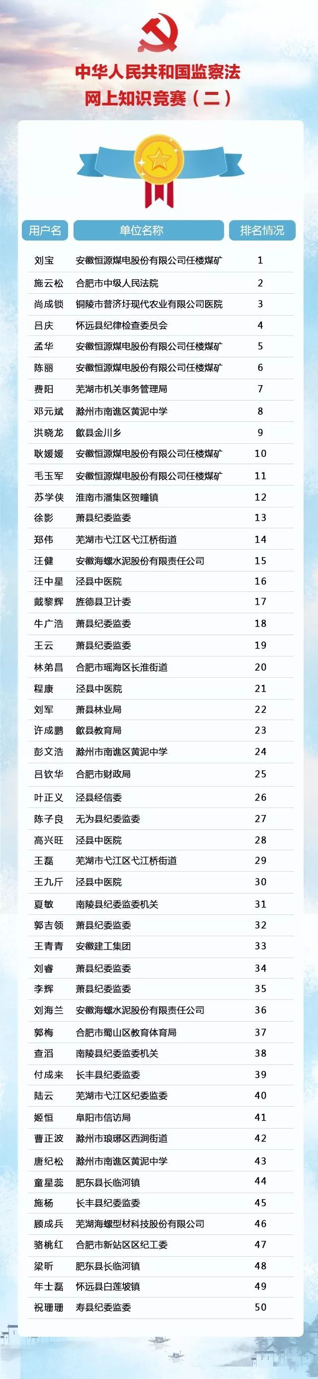 截至目前,“半月一赛”围绕《中国共产党纪律检查机关监督执纪工作规则》《中华人民共和国监察法》两个学习专题,共举行了5期,总计有53.9万余人次参与答题,合格率达96%以上。