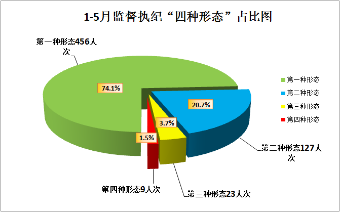 今年以来,宿州市埇桥区纪委监委始终坚持“惩前毖后,治病救人”的方针,准确把握运用监督执纪四种形态,抓早抓小,防患于未然。1-5月,全区纪检监察机关运用监督执纪“四种形态”处理615人次。其中第一种形态456人,占比74.1%。