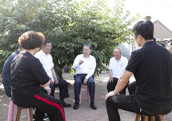 6月19日至21日,中共中央政治局常委、中央纪委书记赵乐际到辽宁省调研。这是6月19日,赵乐际在辽宁省海城市朱家村与村干部和村民代表面对面交流。新华社记者 丁海涛 摄