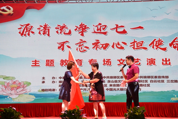 “七一”来临之际,滁州市琅琊区在人民广场举办“源清流净迎七一 不忘初心担使命”主题教育专场演出。整台晚会凸现以党的全心全意为人民服务为主线,以党员干部做守纪的表率、清廉的表率、担当的表率为主题,通过社区干部舞台亮身份、表初心、温誓词、老党员与新党员红色传承和廉洁歌舞、党纪沿革讲述等表达形式,取得了台上台下互动、正面宣传党的理想信念和为民服务宗旨的良好效果,赢得现场群众纷纷点赞。