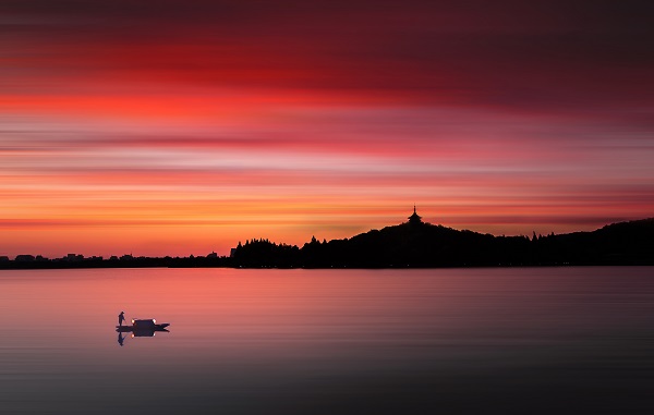 西湖被静谧的朝霞笼罩(张闻涛 摄)