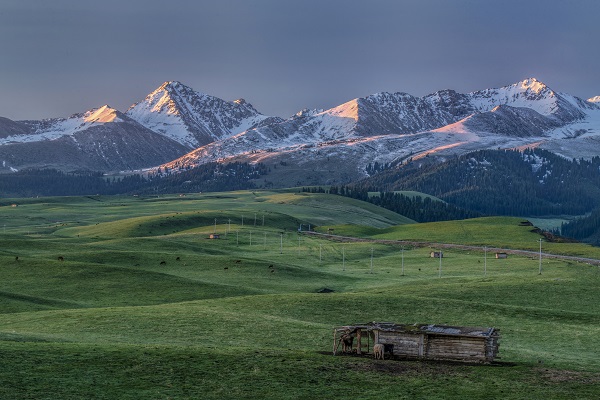 远处矗立的雪山,给夏季的草原增添了清凉(程乐意 摄)