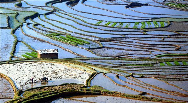 秧田铺翠,麦陇翻云。(邱宗勤 摄)