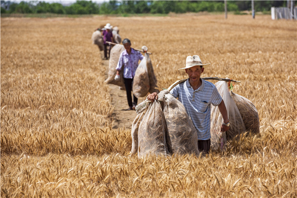 麦垅黄云堆万顷,收刈处,有人耕。(刘士忠 摄)