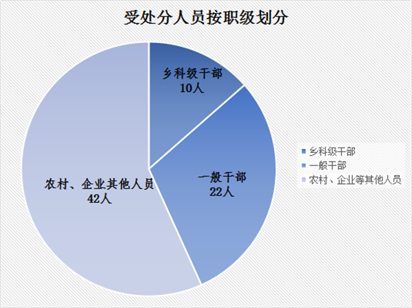 在给予党纪政务处分的人员中,涉及科级干部10人,占比13.5%;一般干部22人,占比29.7%;其他人员42人,占比56.8%。