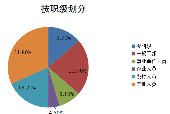 1-6月共立案22件,按照职级划分:乡科人3人,一般干部5人,事业单位人员2人,企业人员1人,农村人员4人,其他人员7人。