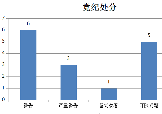 1-6月共结案18件,给予党纪处分15人:警告6人,严重警告3人,留党察看1人,开除党籍5人。