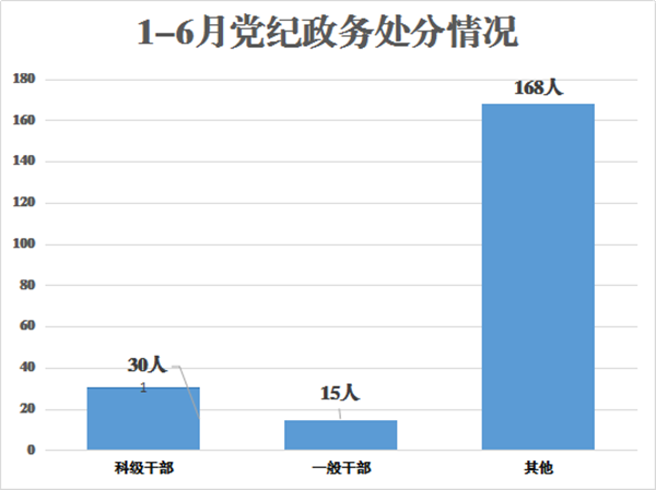 加大监督执纪问责力度,切实做到处理一个,教育一片,震慑一批。“着力推动全面从严治党向基层、向一线、向群众身边延伸,切实提升群众的获得感幸福感安全感,让群众真切感受到正风反腐就在身边。”该县纪委监委相关负责人说,“板子”要打准,打在痛处,打在具体人身上,实现精准问责,体现问责是为了促尽责,上半年给予党纪政务处分的213人中,涉及科级干部30人,一般干部15人,其他人员168人。