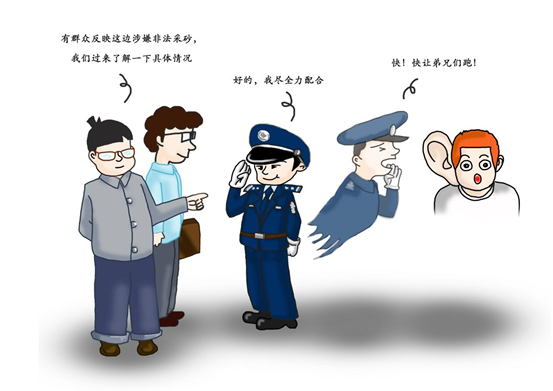 工作人员:有群众反映这边涉嫌非法采砂,我们过来了解一下具体情况。