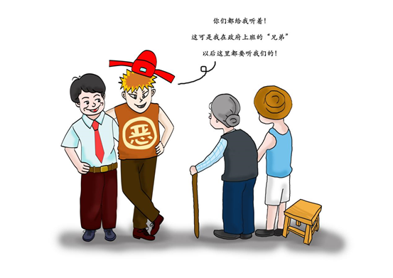 黑恶势力:你们都给我听着!这可是我在政府上班的“兄弟”。以后这里都要听我们的!