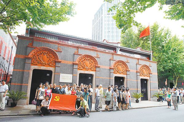 游客在上海中共一大会址前合影留念。(资料图片)