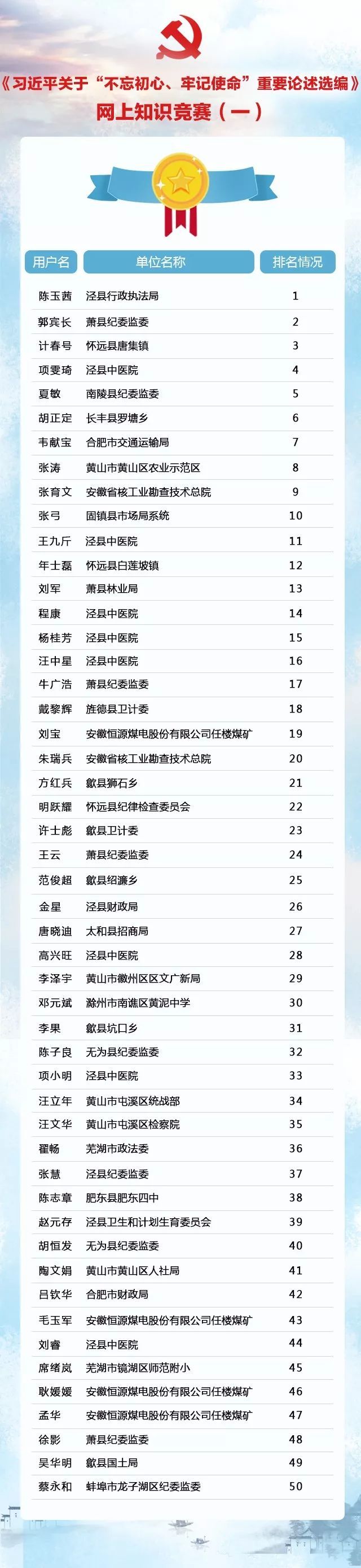 以下同志位列前50名,