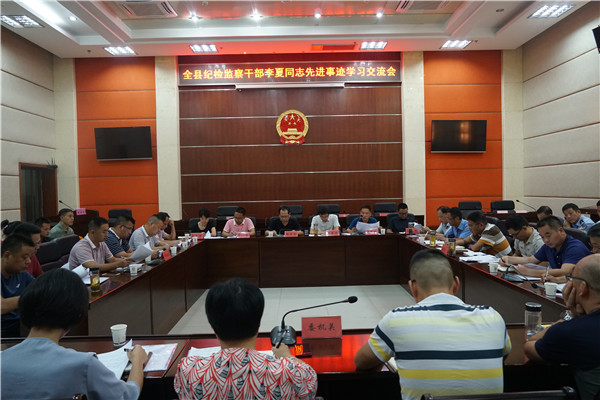县纪委监委组织召开全县纪检监察系统学习李夏同志先进事迹交流会,化悲痛为动力,对照先进找不足,做新时代优秀纪检监察干部。