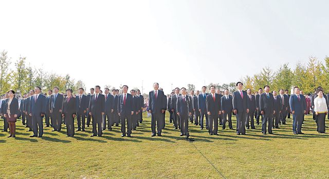 山西省临汾市纪委监委全体人员合唱歌曲《我和我的祖国》,表达对伟大祖国的无限热爱和深情祝福。(山西省临汾市纪委监委供 纪轩 摄)