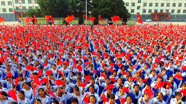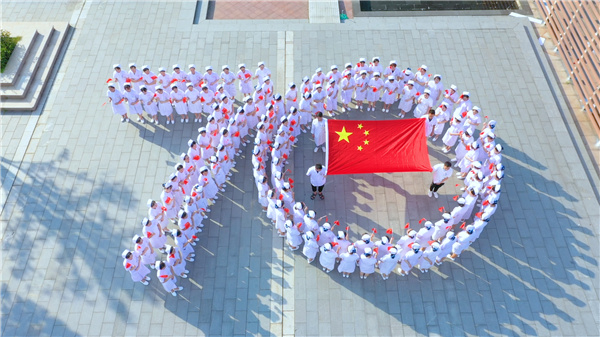 国庆前夕,河南省扶沟县包屯高级中学举行庆祝新中国成立70周年盛大欢庆活动。借此,弘扬爱国主义精神,将“中国红”深深地烙印在孩子们的心中。(河南省扶沟县纪委监委供 马志强 摄)