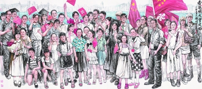 不忘初心,坚持“一国两制”,香港的未来一定更美好(油画)徐里、谭乃麟