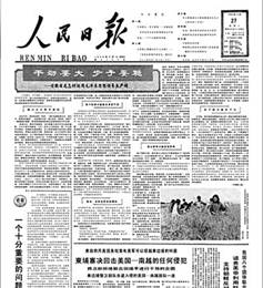 1962年,安徽省新任主要领导上任后,注重加强党员管理教育,使省内风气一振,短短几年就从反面教材变成先进典型。图为1965年12月27日,人民日报头版头条刊登的安徽经验报道。