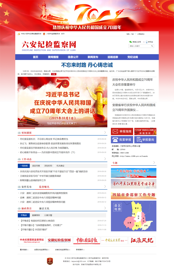 为积极顺应新媒体发展形势,积极回应社会关切和群众呼声,进一步丰富纪检监察宣传教育平台,为深入开展纪检监察工作提供良好的舆论支持和宣传服务,六安市纪委监委历时1个月改版“六安纪检监察网”,于10月1日正式上线。