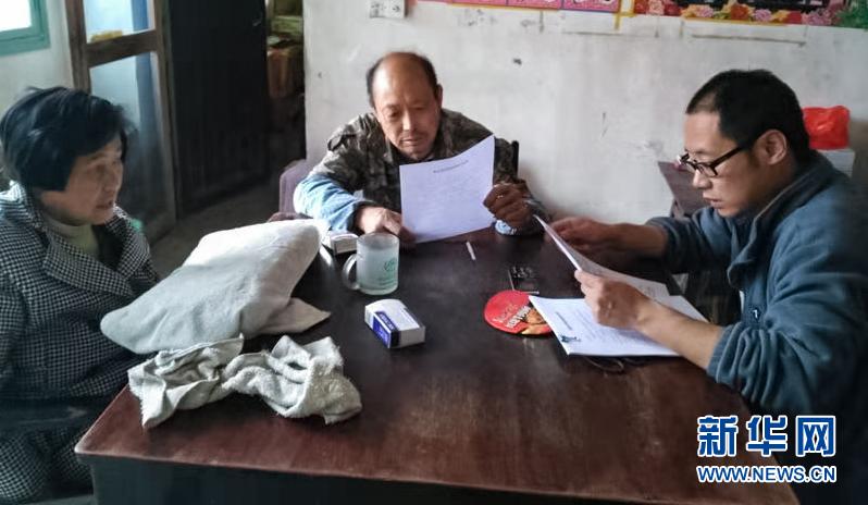 李夏(左)在贫困户家中走访(资料照片)。 新华社发