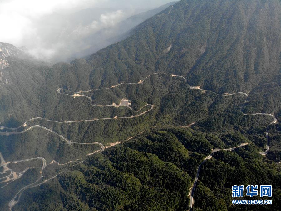 这是通往安徽省绩溪县荆州乡的盘山公路(10月11日无人机拍摄)。 新华社发(黄博涵 摄)
