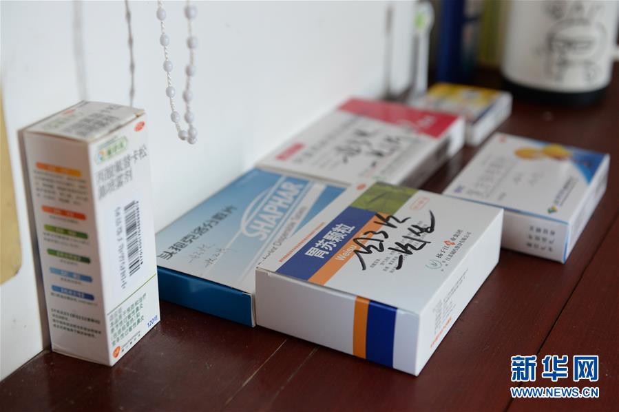 这是10月11日拍摄的李夏书桌上的药物。 新华社发(黄博涵 摄)