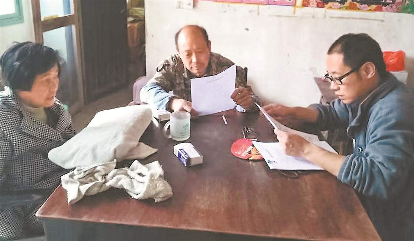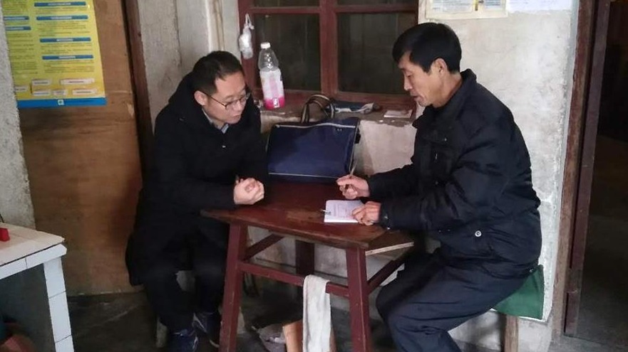 ▶ 李夏(右)在安徽省绩溪县长安镇高杨村走访贫困户(资料照片)。 新华社发