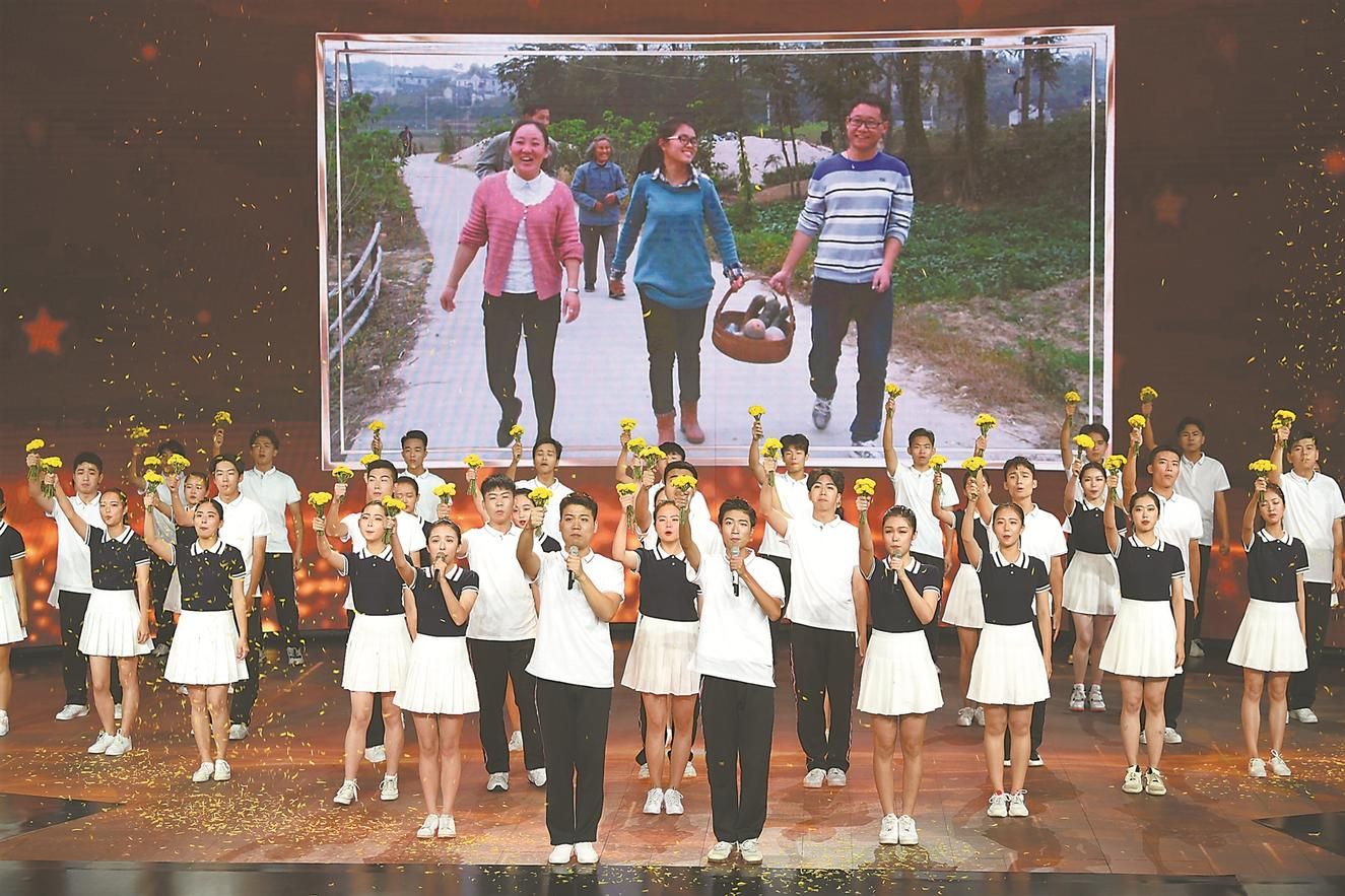 来自李夏母校——防灾科技学院的学生们,在《时代楷模发布厅》现场为李夏唱起歌曲《生如夏花》,并手持李夏生前工作过乡镇所产的黄色雏菊向他致敬。本报记者 杨竹 摄