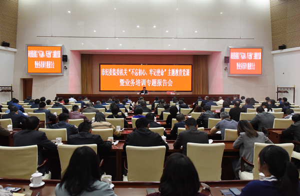10月31日,合肥市纪委监委举行“不忘初心、牢记使命”主题教育党课。合肥市委常委、市纪委书记、市监委主任汪学致作题为《坚守初心使命 把握职责定位 推动新时代纪检监察工作高质量发展》的专题党课报告。