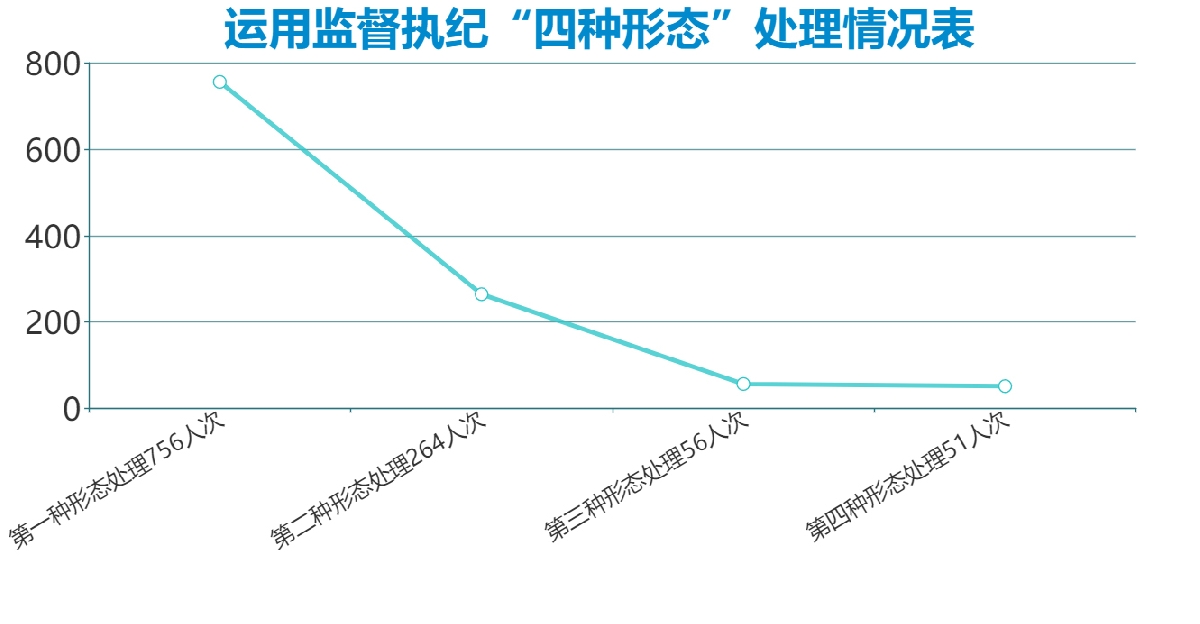 1-10月,全县纪检监察系统共运用监督执纪“四种形态”处理1127人次。其中,第一种形态756人次,占总处理人数的67.1%;第二种形态264人次,占总处理人数的23.4%;第三种形态56人次,占总处理人数的5%;第四种形态51人次,占总处理人数的4.5%。