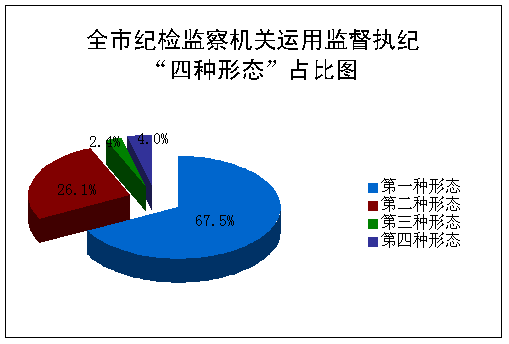 1-10月,宣城市纪检监察机关运用监督执纪“四种形态”处理2549人次。其中,第一种形态1721人次,占“四种形态”处理总人次的67.5%;第二种形态666人次,占26.1%;第三种形态60人次,占2.4%;第四种形态102人,占4.0%。
