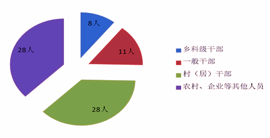 在给予的党纪政务处分中,涉及乡科级干部8人,一般干部11人,村居干部28人,农村、企业普通党员等其他人员28人。