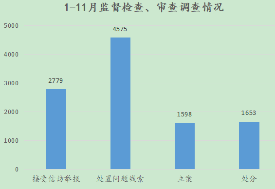 1-11月,六安市纪检监察机关全面履行监督执纪问责和调查处置职责,进一步推动工作高质量发展。今年以来,共接受信访举报2779件次,处置问题线索4575件,立案1598件,给予党纪政务处分1653人,移送检察机关35人。