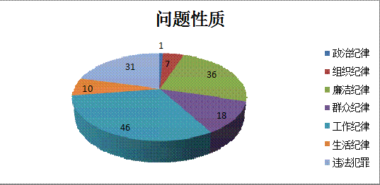 反映问题性质主要是:违反政治纪律1件,违反组织纪律7件,违反廉洁纪律36件,违反群众纪律18件,违反工作纪律46件,违反生活纪律10件,职务违法犯罪行为31件。(芜湖市纪委监委)