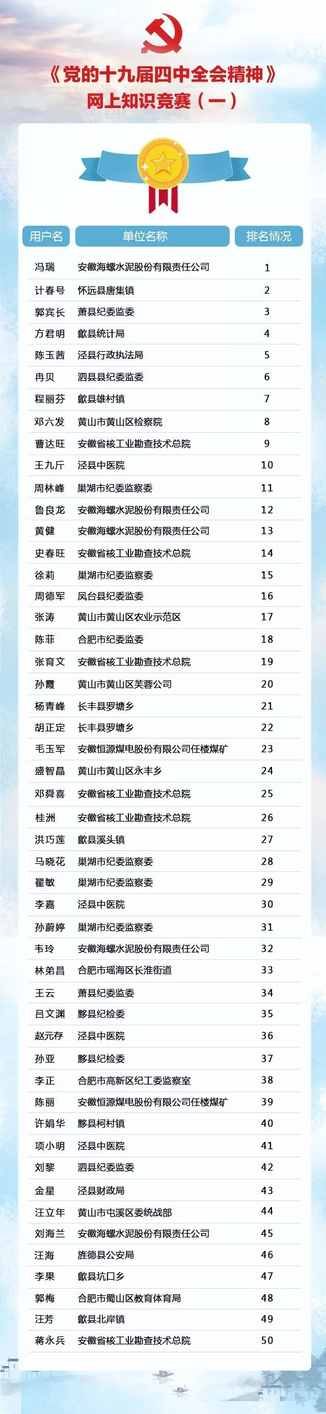 上一期共有6万人次参与答题,合格率达97%以上。以下同志位列前50名,荣获“半月一赛”第12期“党纪法规知识在线学习之星”!