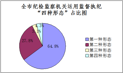 2019年,宣城市纪检监察机关深化运用监督执纪“四种形态”处理3270人次。其中,第一种形态2118人次,占“四种形态”处理总人次的64.8%;第二种形态909人次,占27.8%;第三种形态103人次,占3.1%;第四种形态140人,占4.3%。