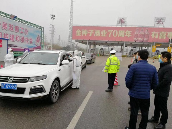 濉溪县南坪镇路东村因临近高速路口和省道,该村村部被作为防疫卡点,县医院派出专职医护人员对过往车辆,尤其是外地车辆人员进行体温测量。图为县纪委监委第三督查组在该卡点督查疫情防控开展情况。