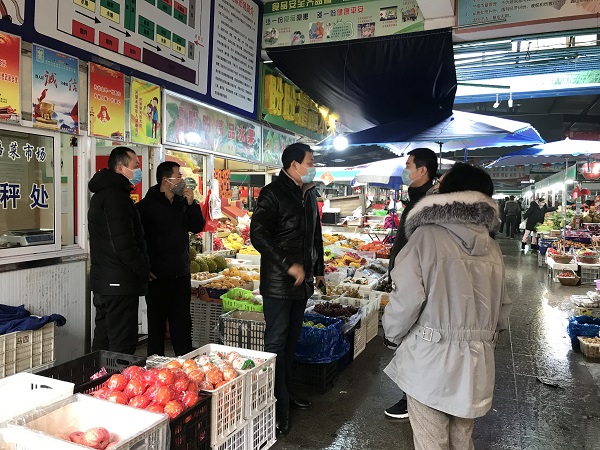 相山区纪委监委由区纪委常委带队,组织各派驻纪检监察组成员组成行业督查组重点督查市场监管、投诉处理等。图为行业督查组到辖区菜市场查看市场稳定情况。