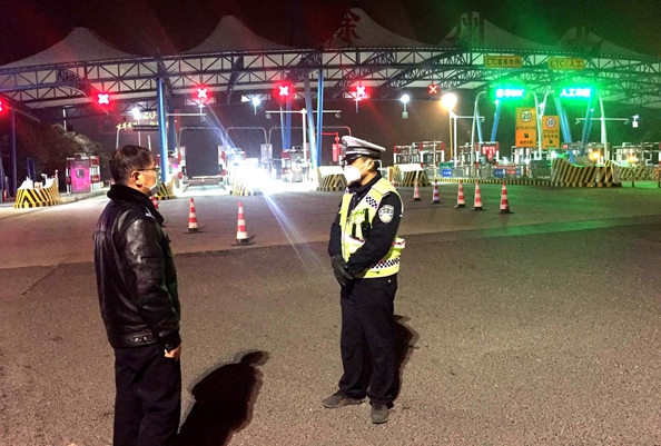 图为驻县公安局纪检监察组到高速路口督查走访
