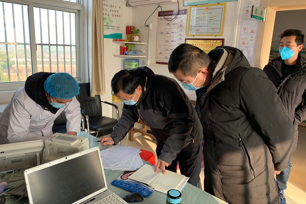 图为雷官镇纪委督查组查看各村疫情值班、摸排走访外地返乡人员情况