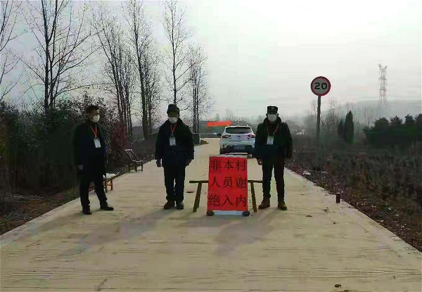 铭传乡各村居纷纷相应国家号召,设置“警戒线”,避免人员流动。(王鹏程/摄)