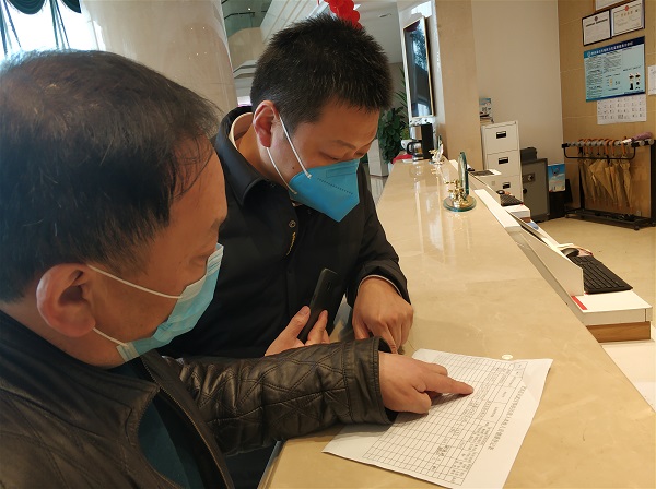 驻县文旅局纪检监察组工作人员每日对县域内的星级酒店住客情况进行排查。(余柳/摄)